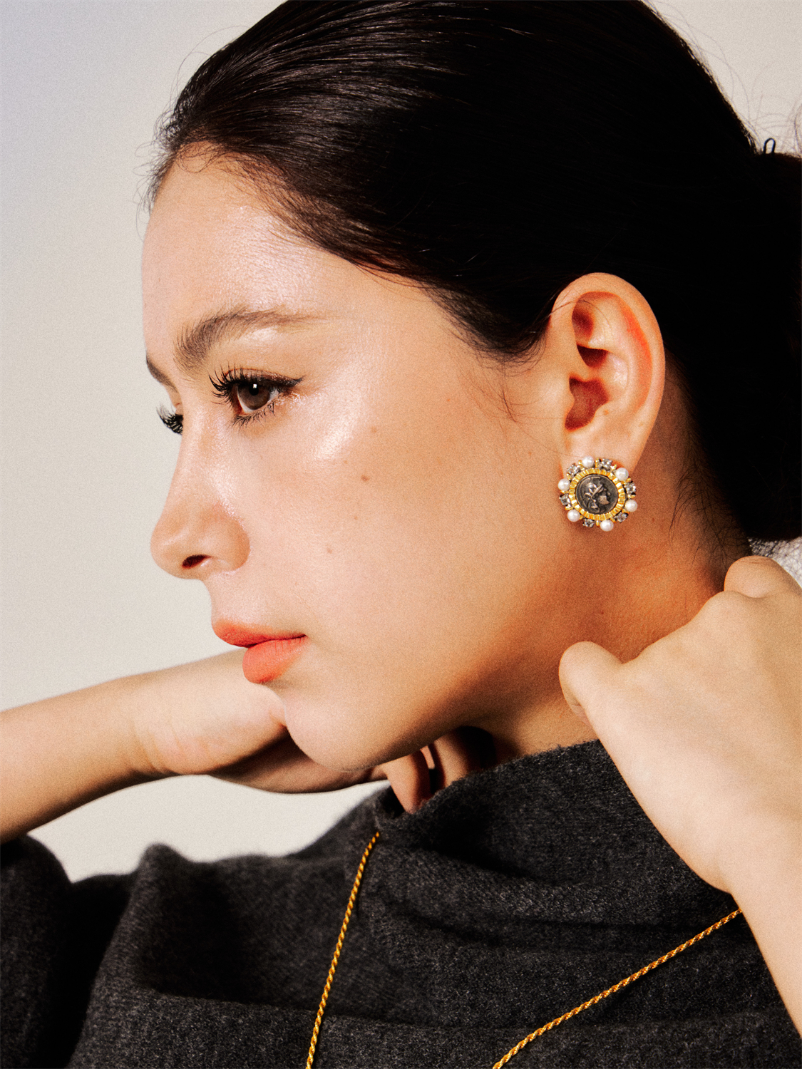 Pearl Antique Coin Earrings